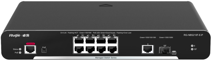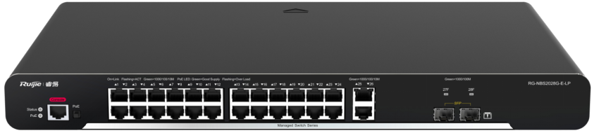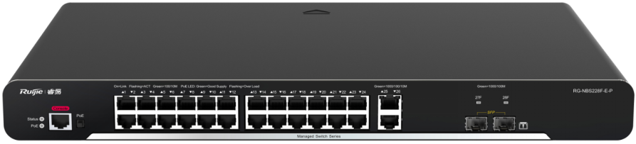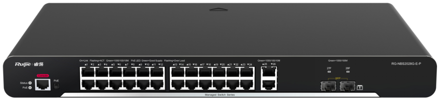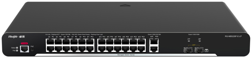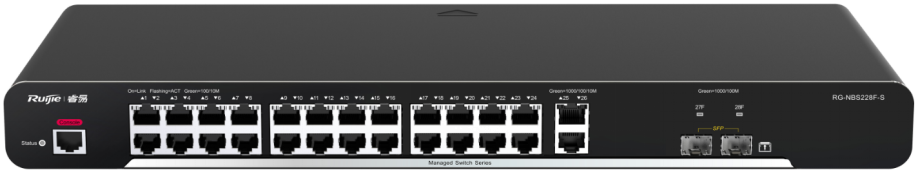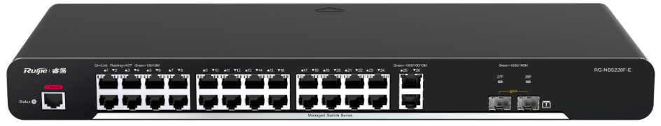smart 系列交换机包含RG-NBS210F-E、RG-NBS210F-S、RG-NBS210F-E-P、RG-NBS2010G-E、RG-NBS2010G-S、RG-NBS2010G-E-P、RG-NBS228F-E、RG-NBS228F-S、RG-NBS228F-E-P、RG-NBS228F-E-L、RG-NBS2028G-E、RG-NBS2028G-S、RG-NBS2028G-E-P、RG-NBS2028G-E-LP,是锐捷网络推出的融合了高性能、高安全、多业务的新一代二层交换机。主要应用于大型网络的接入层, 提供全线速二层交换, 根据不同应用对不同业务流分级处理,保证重要数据传输无延时。