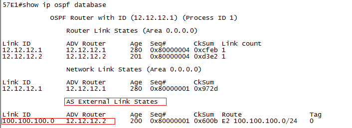 57E1(config-router)#network 12.12.12.1 0.0.0.0 area 0