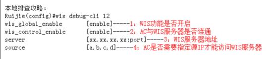 在AC上的配置模式中使用wis debug-cli 12查看如下信息: