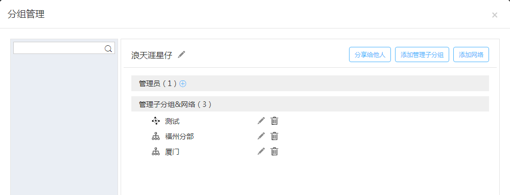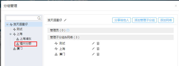 分享给他人:将这个网络分组分享出去给其他的子账户使用,其他的账号就可以对这个网络分组进行管理。