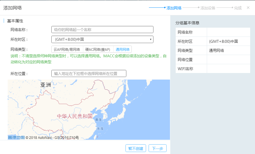 添加网络:添加的网络分组,对于不同的网络可以分组出不同的网络节点