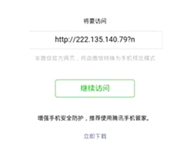 26、微信连WIFI认证点击右上角的完成后出现微信的安全性提示,提示需要访问某个网站(网站是认证设备的ip),点击“继续访问”后微信广告直接白屏