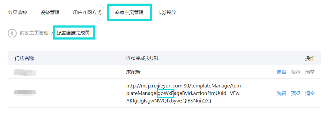 详细配置,参考:【04 快速配置】——【02 微信连WiFi认证】——【02 微信公众平台配置】——【03 门店小程序方法配置】——【04 微信广告配置】