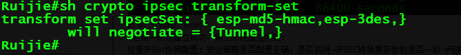 Ruijie(config)#crypto isakmp key 0 ruijie hostname www.ruijie.com