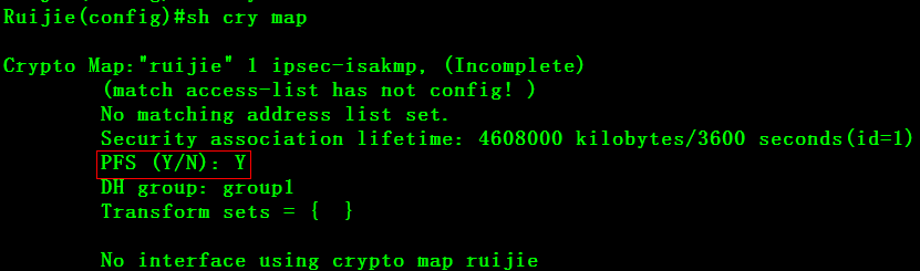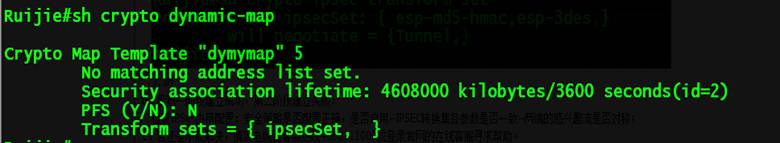 Ruijie(config)#crypto map ruijie 1 ipsec-isakmp