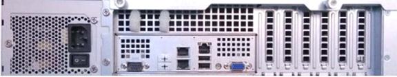 后置面板:1、电源开关和电源、接口串口线,公头波特率115200 2、2个千兆数据通信口(主地址/备地址) 3、BMC口 4、2个USB2.0接口 5、VGA显示器输出口