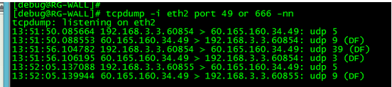 49端口的报文,如有则说明此主机一直在向VPN设备发送认证报文,导致VPN设备误认为有用户已登录,此时可以查找对应IP的主机,在此主机上进行限制;反之则怀疑设备软件故障。
