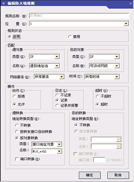 反向NAT规则:所有SSL/VPN的用户访问内网资源,实际使用的是eth1这个内网接口地址,而不是192.168.0.0/16这个虚拟IP地址网段来和内网通信。