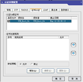 使用数字证书认证时,需要勾选认证参数的证书项。