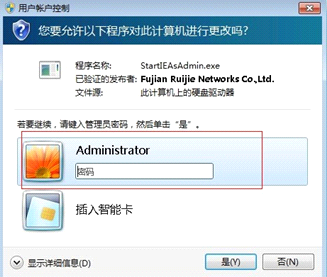 VPN客户端时,客户端系统会自动调用WIN 7系统接口,引导用户获取超级管理员权限,但必须保障UAC功能开启;