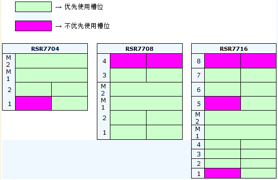 2)考虑设备的散热效果,RSR77系列 V1.0X机箱推荐使用如下槽位,散热效果更佳: