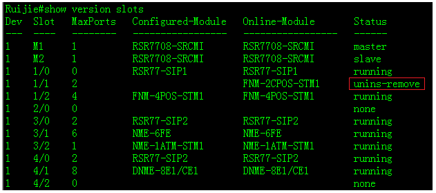 RSR77系列路由器 若对应的槽位无法识别到线卡,可以通过如下步骤定位故障原因: