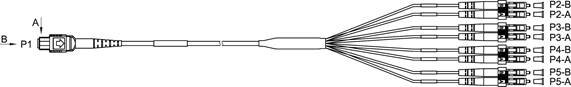 对于支持40G拆分为4*10G的设备系统,还可通过MPO-4*LC跳线,实现40G转4*10G的连接应用,MPO-4*LC光纤连接器如下图所示。