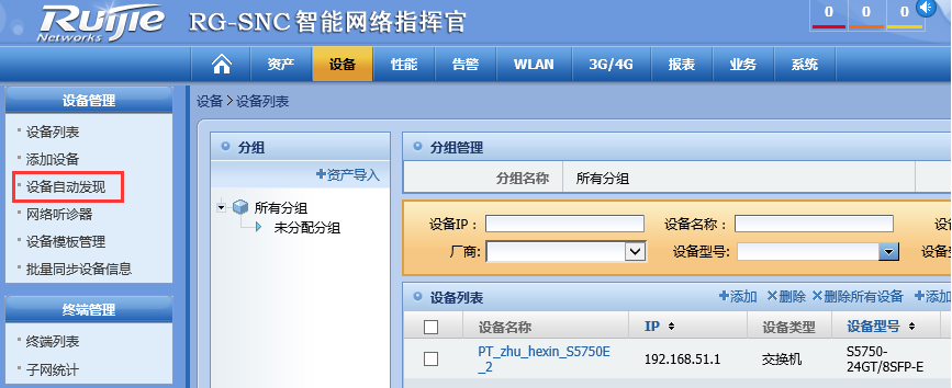 4、如果网络环境比较复杂或存在多个厂商的网络设备时,通过多次自动发现仍无法发现设备,可以手动添加设备,详细操作参考基本配置>添加设备>手动添加设备。