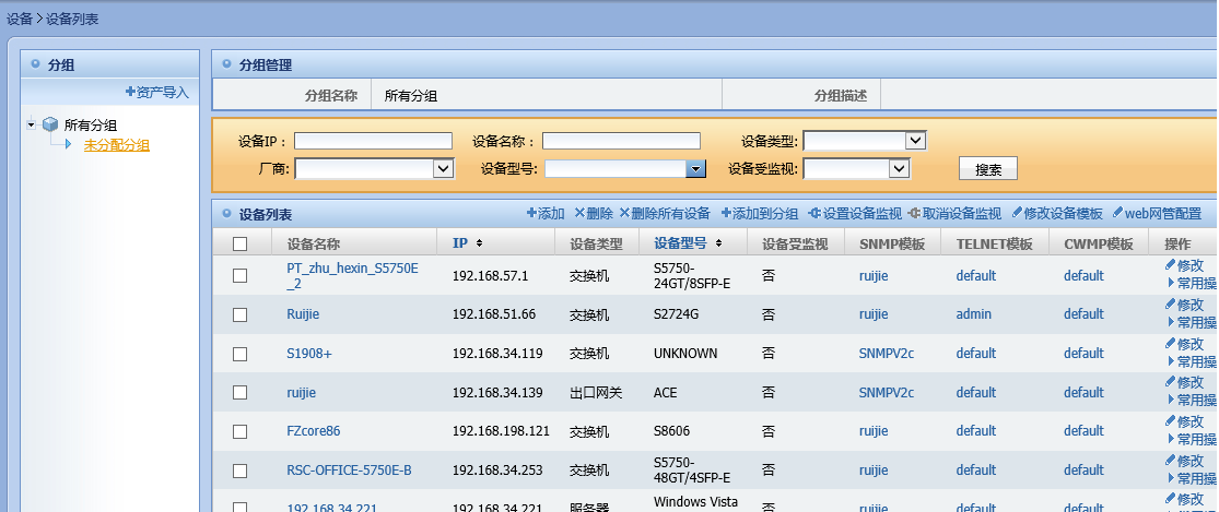 1、必须满足设备与SNC上的SNMP模板与telnet模板一致才能正常进行设备添加并收集设备信息。