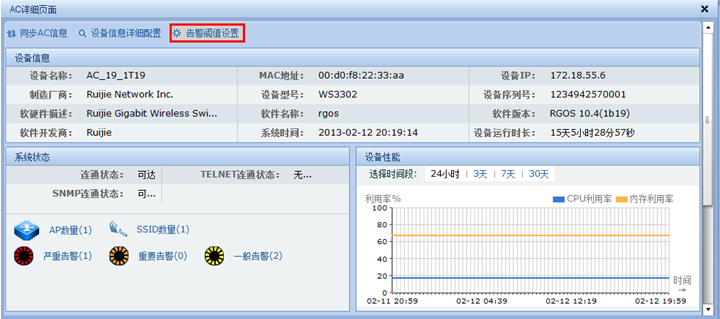 该功能主要用于AC告警阀值的设置。当AC的这些性能参数超过阀值,则认为是故障产生告警,提醒管理员进行查看处理。