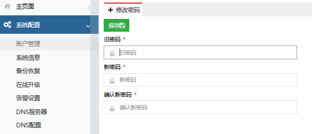 强烈建议首次登录后,打开系统配置>>账户管理,进行密码修改操作,并牢记修改后的密码。消除设备弱口令的风险,避免设备被恶意入侵。