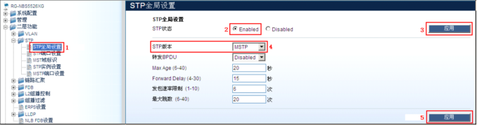 步骤2:设置STP状态为“Enabled”;