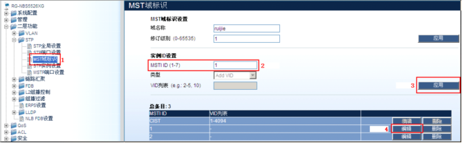 步骤2:设置MSTI ID为“1”;