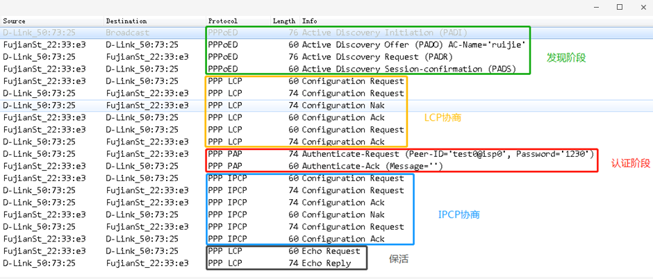 PPPOE协议共包括两个阶段,即PPPOE的发现阶段(PPPOE Discovery Stage)和PPPOE的会话阶段(PPPOE