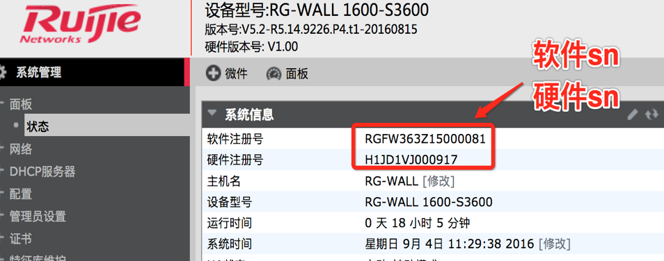 硬件SN:”H1”开头的一串13位的代码,可以在机箱标贴及web首面上的[硬件注册号]显示内容找到