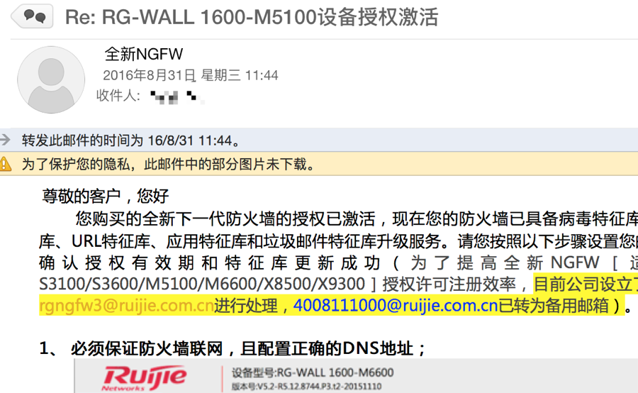 (2)将以上信息发送到全新ngfw授权激活专用邮箱rgngfw3@ruijie.com.cn;