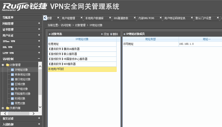 3)配置对象定义:定义内网网段