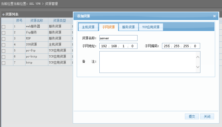 指定外网用户可以访问的内网资源,资源名称可以自定义