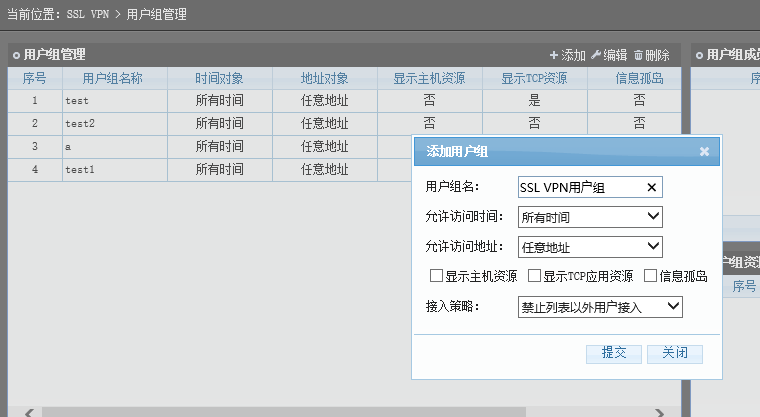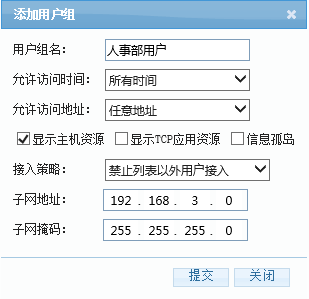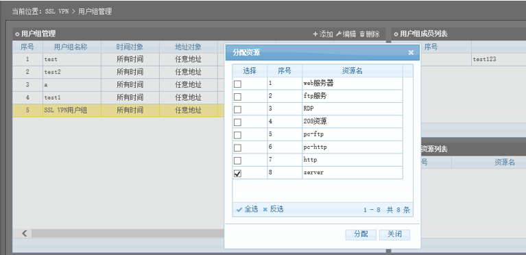 最后我们为该用户组 分配允许访问的内网资源