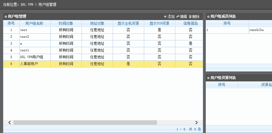 回到 用户组管理 页面,给该账户分配之前我们设定的内网服务资源