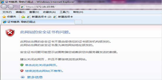 1.在客户端电脑输入外网接口的IP地址:https://172.18.10.98 弹出以下页面