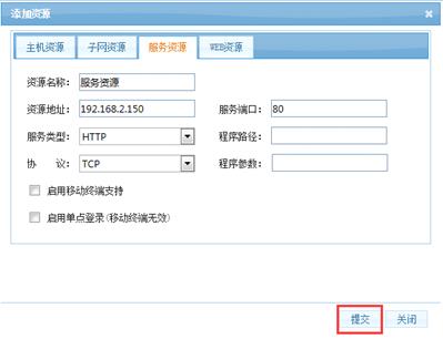 服务资源:配置服务资源,填写资源的域名或者资源的IP地址,端口,服务类型、协议以及服务器的资源路径和资源端口