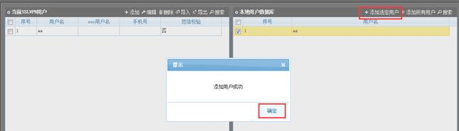 点击“添加选中用户”,点击确定,完成添加