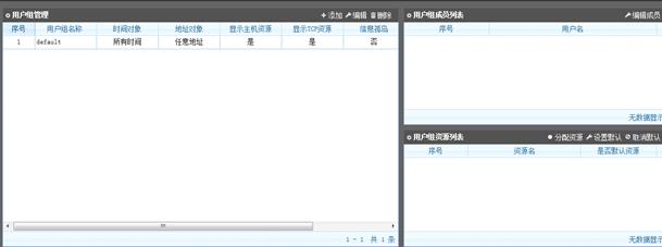 用户组管理分为三大部分:用户组列表,用户成员列表和用户组分配资源列表。