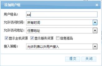 填写用户组名等信息,完成后点击提交按钮;