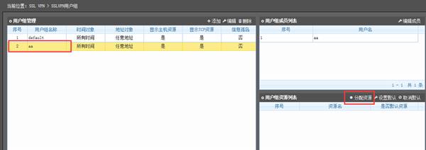 选择“SSL VPN”“资源管理”