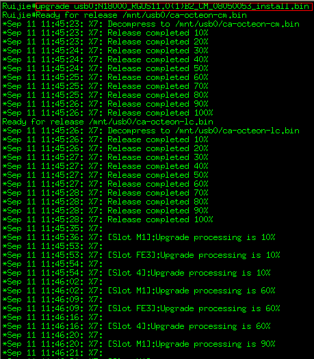 Ruijie#upgrade usb0:N18000_RGOS11.0(1)B2_CM_08050053_install.bin ------>usb0与机架包的名字中间不要有空格,即usb0:与N18000中间不要有空格