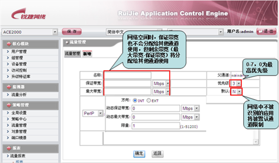 4)优先级说明:优先级越高,在网络拥堵的时候带宽将被优先保证,如果所有通道的优先级都一样,则在网络拥堵的时候相互之间会有影响;所以建议像WEB类的业务优先级设置高点,P2P类的业务可以相对低一些;