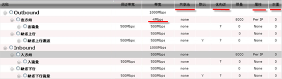 比如当前最高在线IP有1000个,则在PerIP中限量字段需要填写大于1000的值(如1500),如果小于1000,则后面接入网络的用户将可能无法得到该通道的带宽