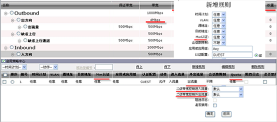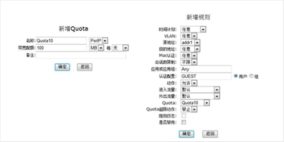 策略中心:MAC认证、Quta及Quta超限动作